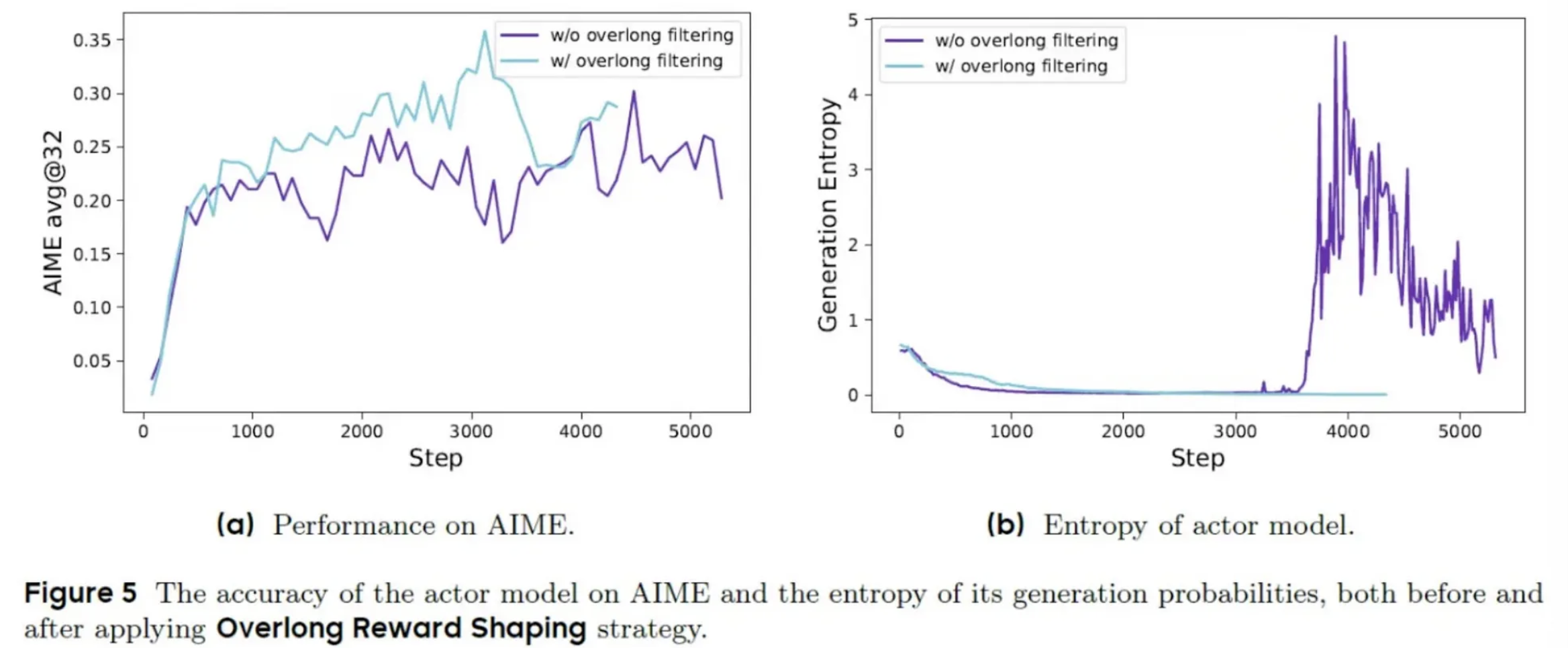 Overlong Filtering: This approach simply avoids updating the model based on truncated responses, preventing them from contributing misleading signals.