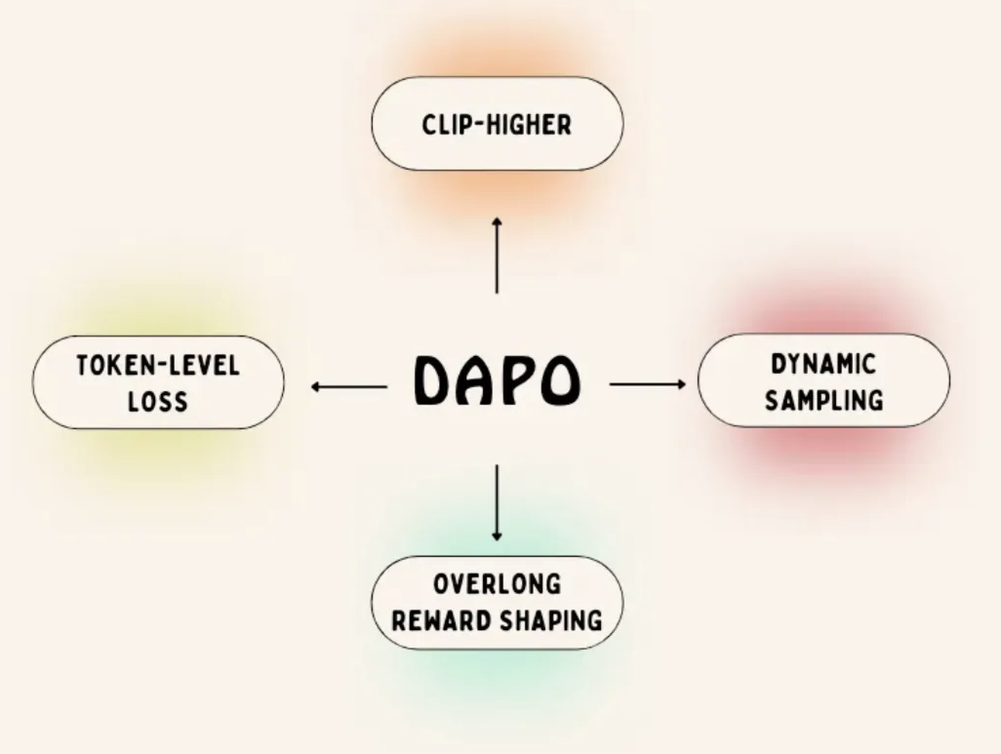 DAPO stands for “Decoupled Clip and Dynamic sAmpling Policy Optimization” (yeah, AI researchers and their acronyms 🤦♀️). But don’t let the fancy name fool you — it’s Build on something called GRPO (Group Relative Policy Optimization).