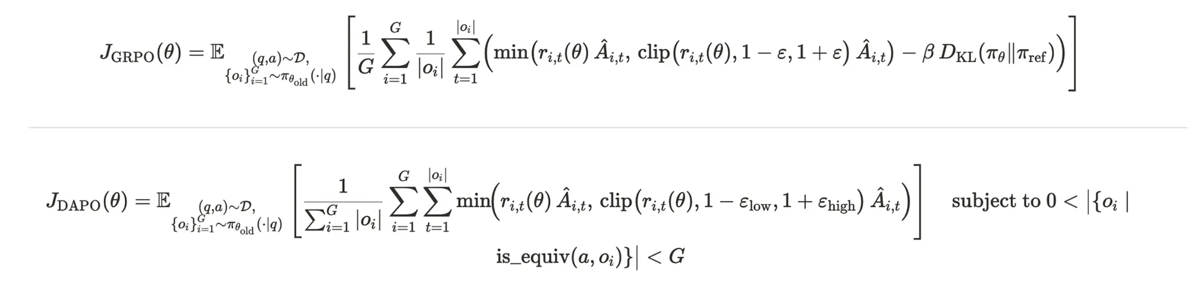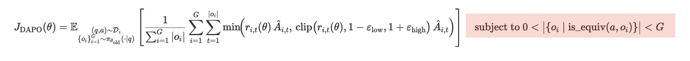 DAPO introduces “Dynamic Sampling,” which filters out problems where all sampled solutions are either all correct or all incorrect.