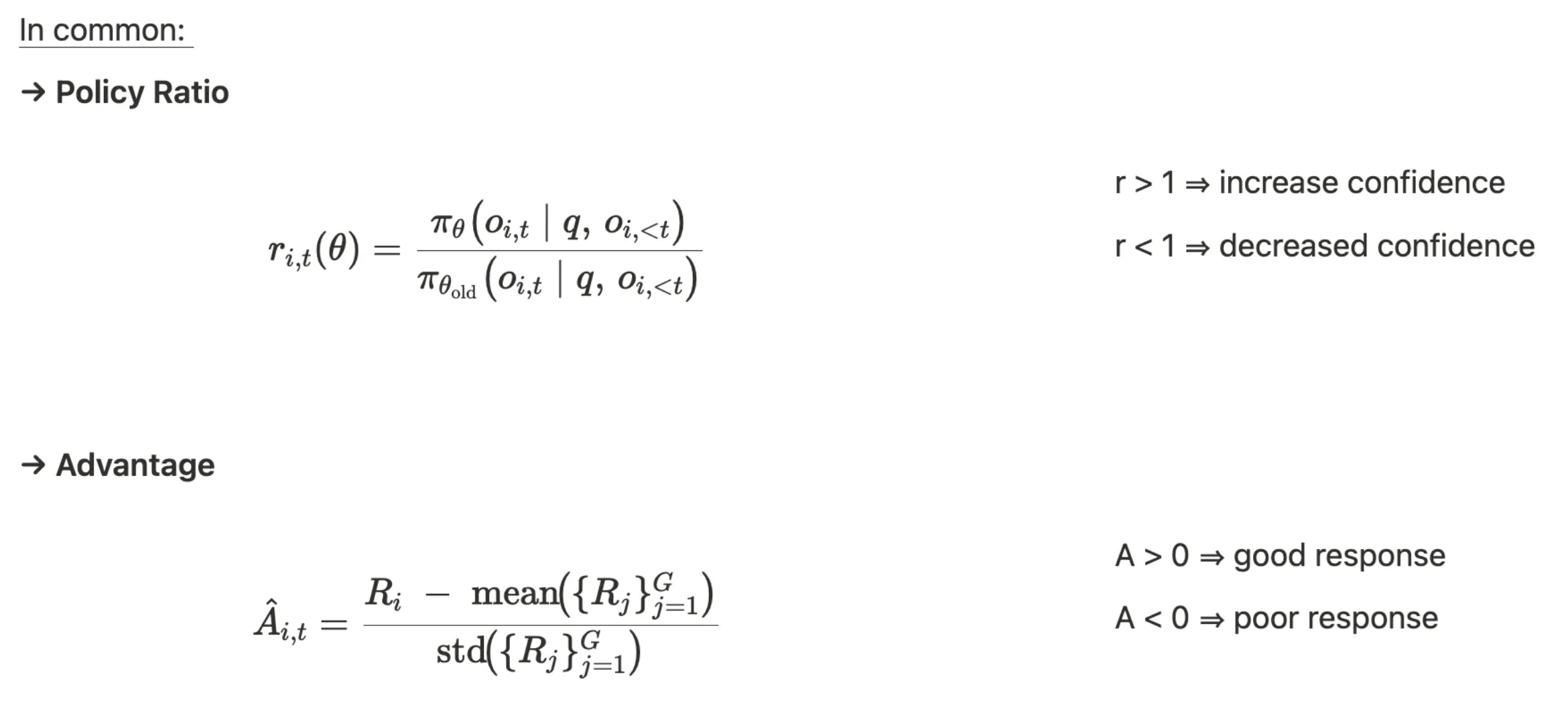 In reinforcement learning algorithms like GRPO and DAPO for mathematical reasoning, models are typically trained by generating multiple solutions for each problem and then each output (solution attempt) receives a reward (Correct solution: reward = +1 / Incorrect solution: reward = -1).