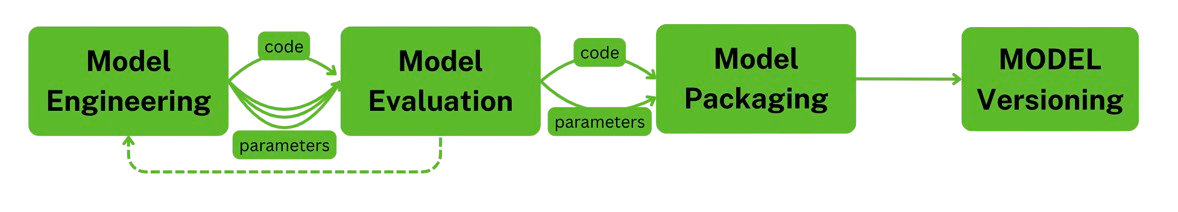 - Model Packaging → Bundle the trained model, preprocessing steps, and metadata into a portable artifact (ONNX, Pickle, TorchScript).