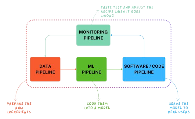 That’s why it’s better to think of ML not as a one-off experiment, but as an engineering workflow powered by four interconnected pipelines: