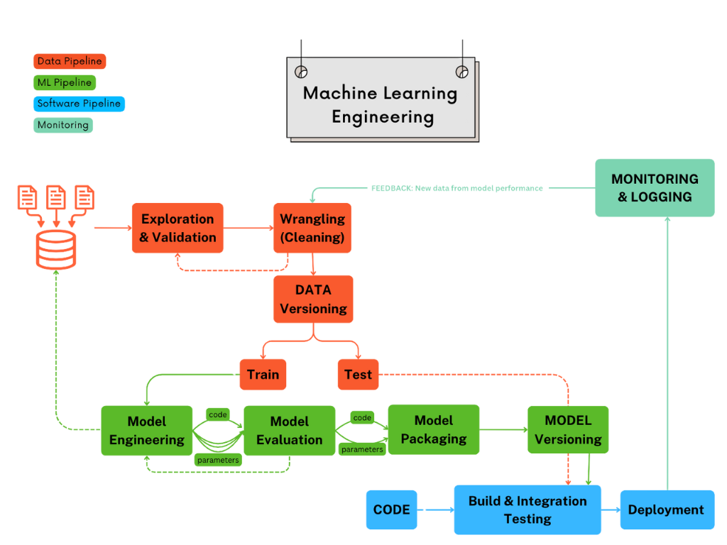 - Model Engineering → Feature engineering (like extracting “average delivery delay by city”), choosing algorithms, tuning hyperparameters.